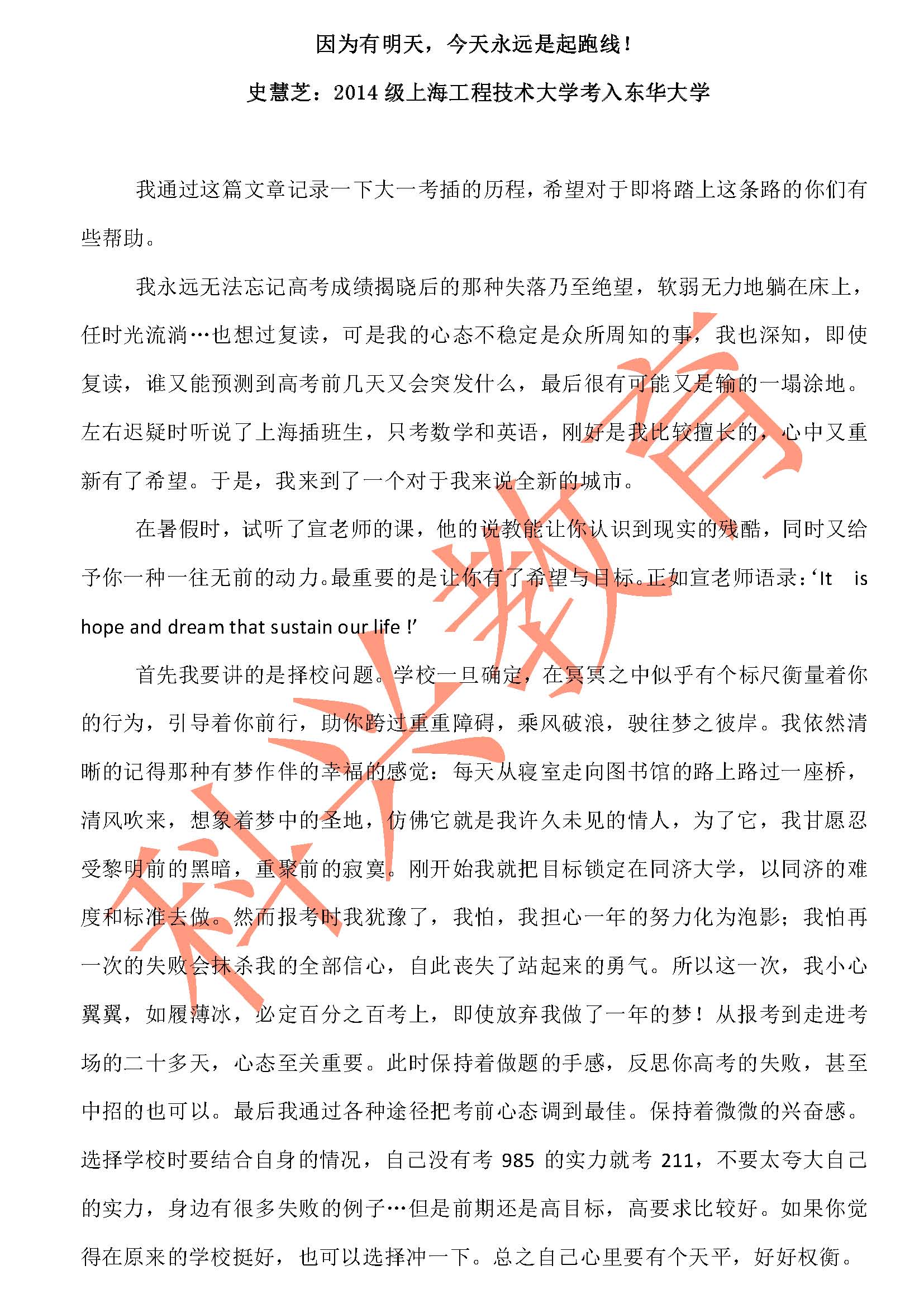 因为有明天,今天永远是起跑线!——东华史慧芝